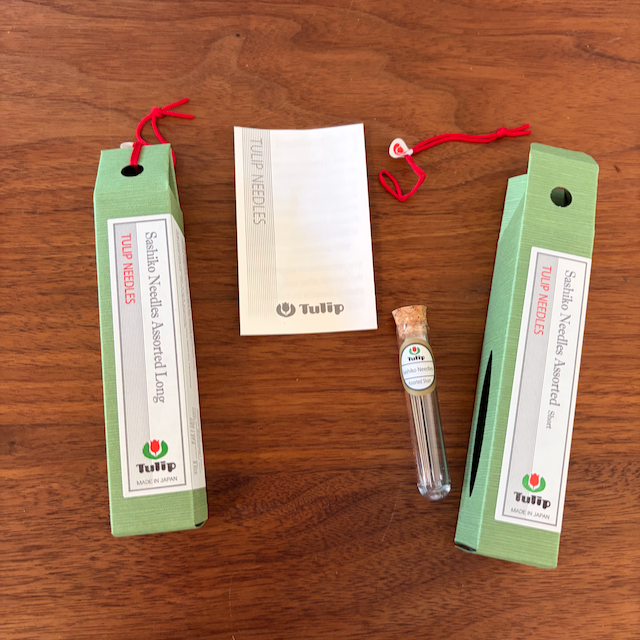 Sashiko Assorted Long Needles (6 needles, 2 of each size: 1.02mm X 66.7mm, .97mm X 44.5mm, .84mm X 51.5mm) good option for long lines of stitching, these needles are all longer in length.